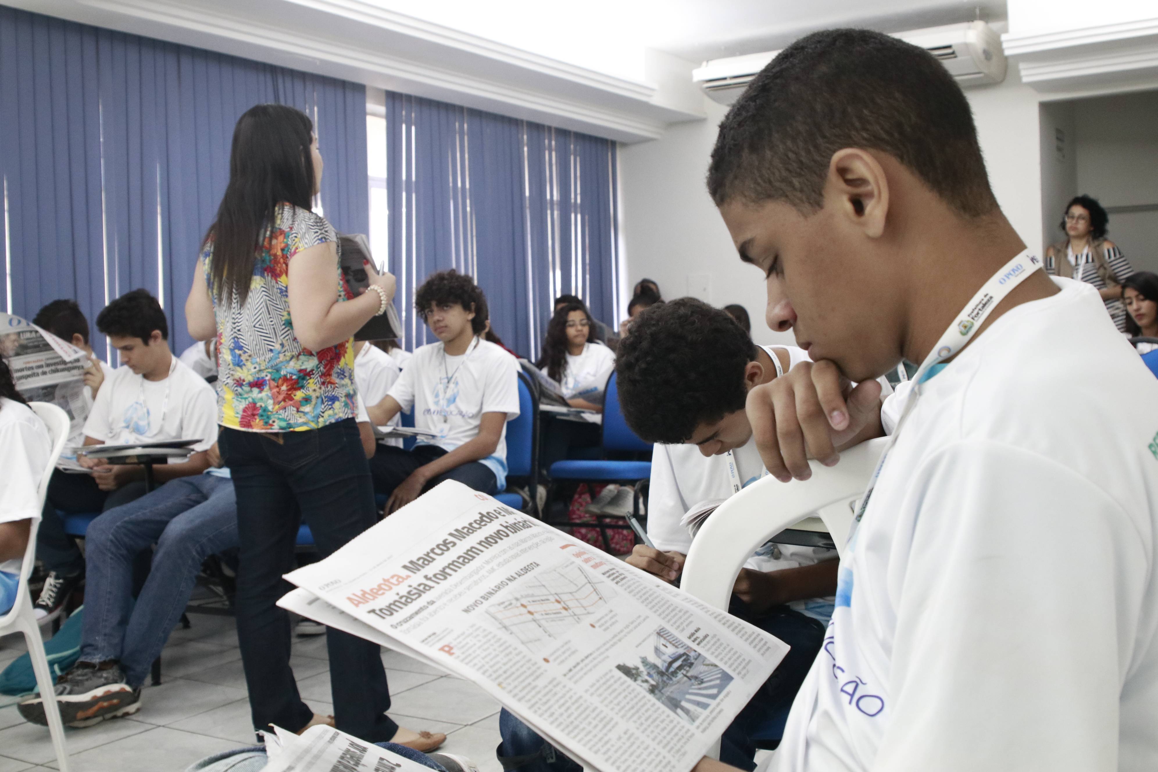 Jornalista Daniela Nogueira ministra oficina de escrita para alunos dos Cucas da Barra do Ceará e Jangurussu no O POVO. FOTO: JULIO CAESAR