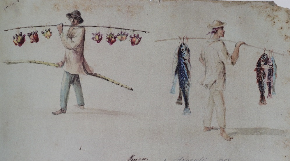 Vendedores ambulantes retratados por José dos Reis Carvalho em Russas, há 160 anos