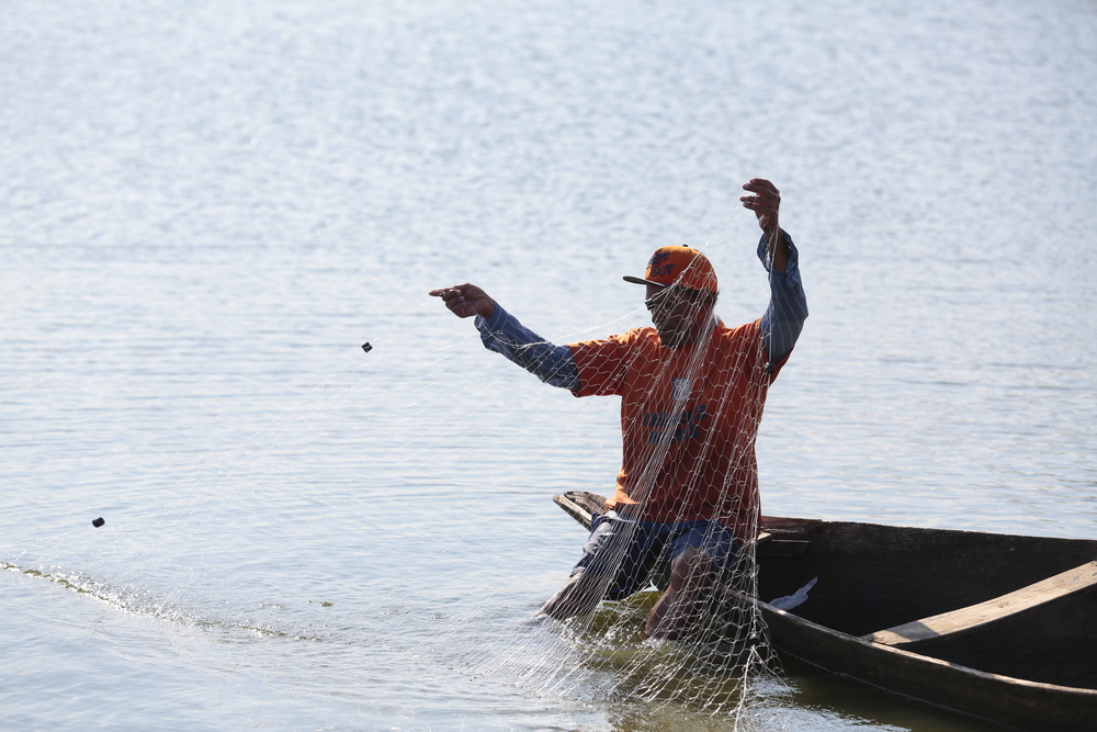 Pesca na Lagoa de Messejana, em Fortaleza. (Foto: Aurélio Alves/O POVO)
