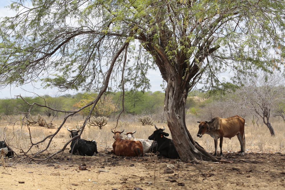 Gado, uma riqueza de Tauá, protegendo-se sob a sombra das árvores. (Foto: Julio Caesar/O POVO)